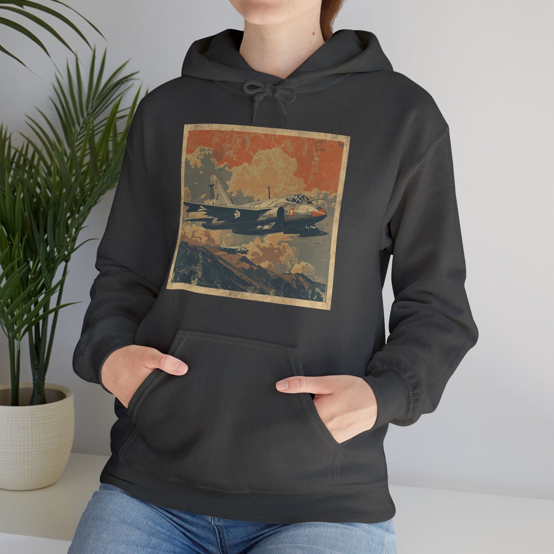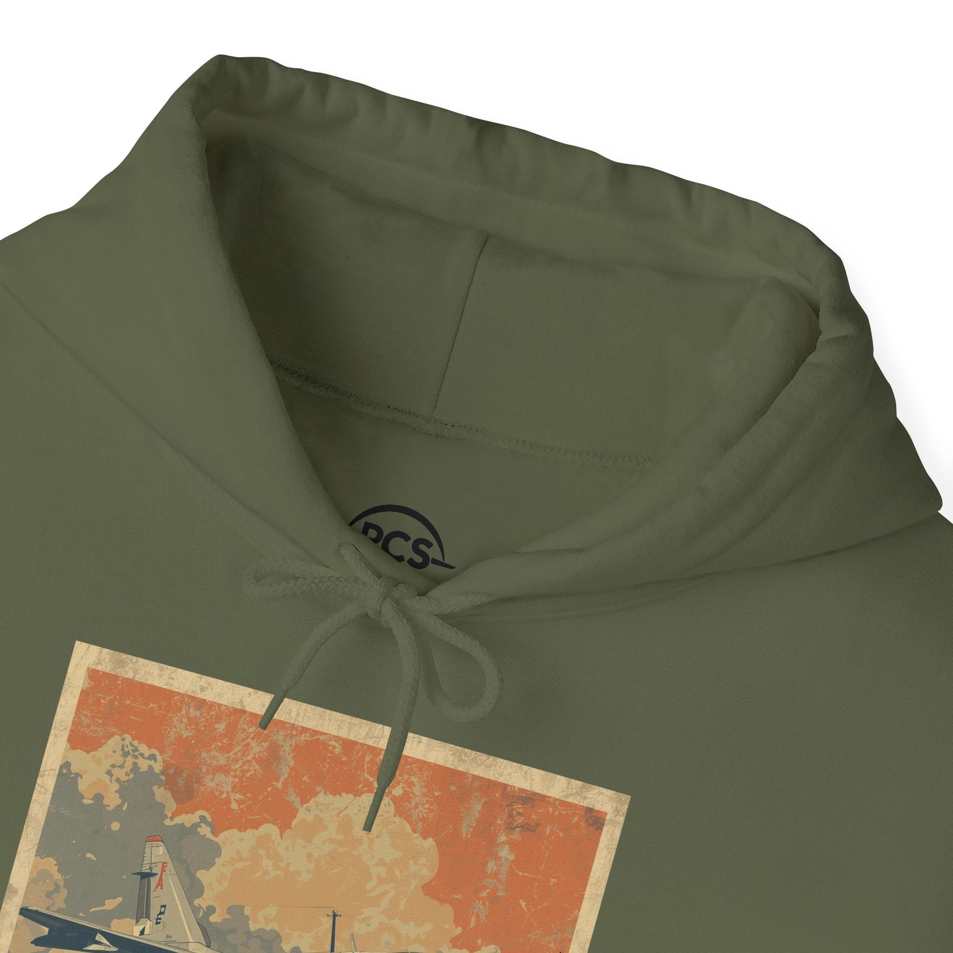 A tribute to classic military aviation history. This vintage-inspired hoodie features retro fighter jet artwork influenced by Cold War aviation posters. Perfect for aviation history lovers and fighter jet enthusiasts who appreciate timeless design and heritage. A blend of nostalgia, aviation pride, and modern comfort.